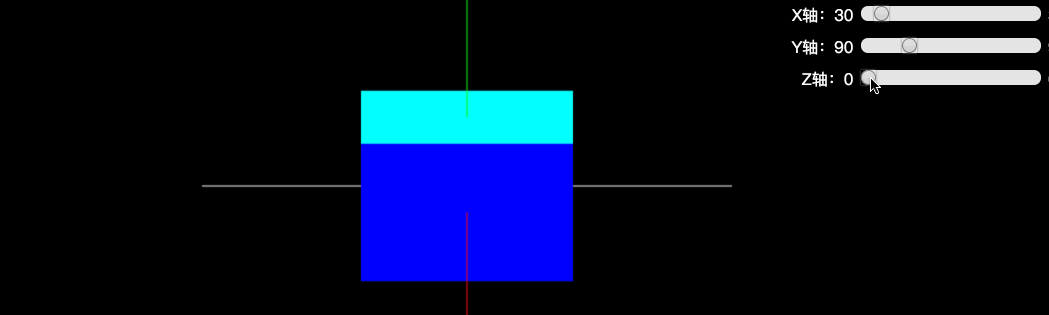 - 首先改变 X 轴旋转角度,直到旋转 90 度。