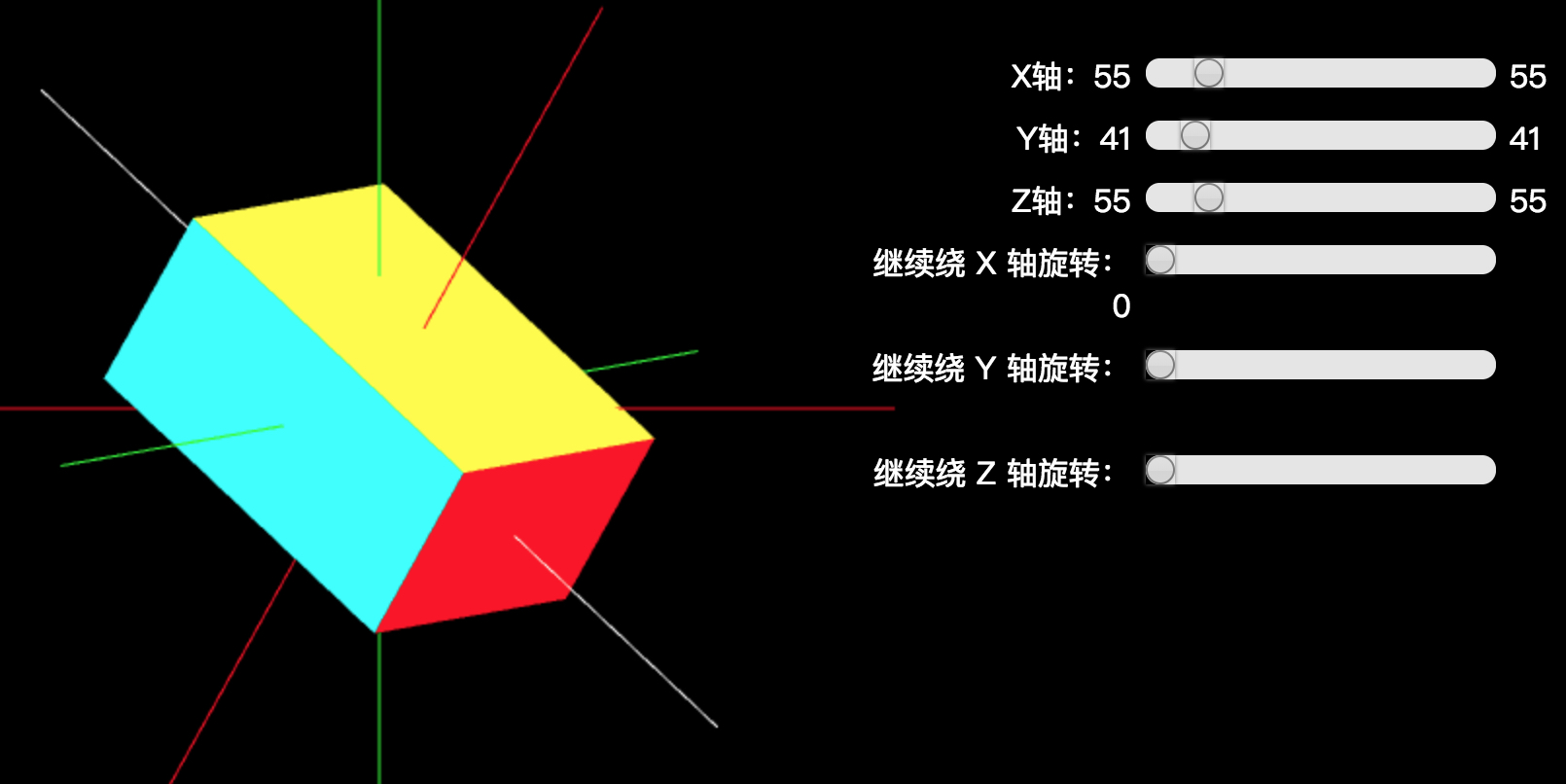 - 参照世界坐标系,先绕 Z 轴旋转,再绕 Y 轴旋转,最后绕 X 轴旋转。