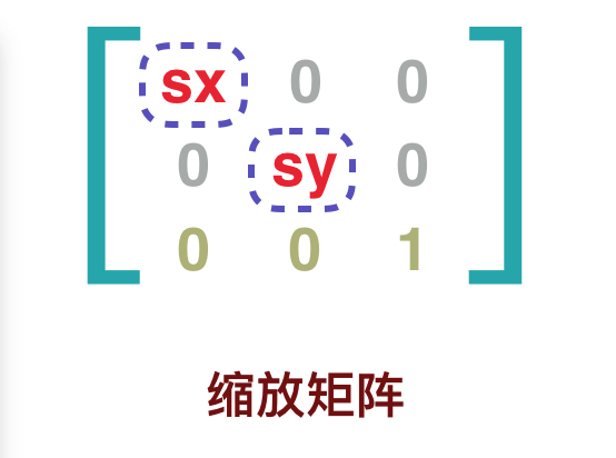 其中 sx 代表 X 轴方向的缩放比例,sy 代表 Y 轴方向的缩放比例,其余位置的元素都是固定的。 比如,沿着 X 轴放大两倍,沿着 Y 轴放大两倍时,css 表示如下: