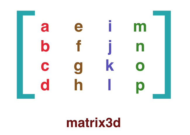 transform: matrix3d(a, b, c, d, e, f, g, h, i, j, k, l, m, n, o, p);
