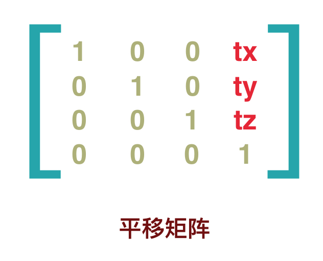 如果,我们想通过 matrix3d 表示平移的话,只需要改变 tx、ty、tz 三个元素即可,其余元素如上图,无需变化。