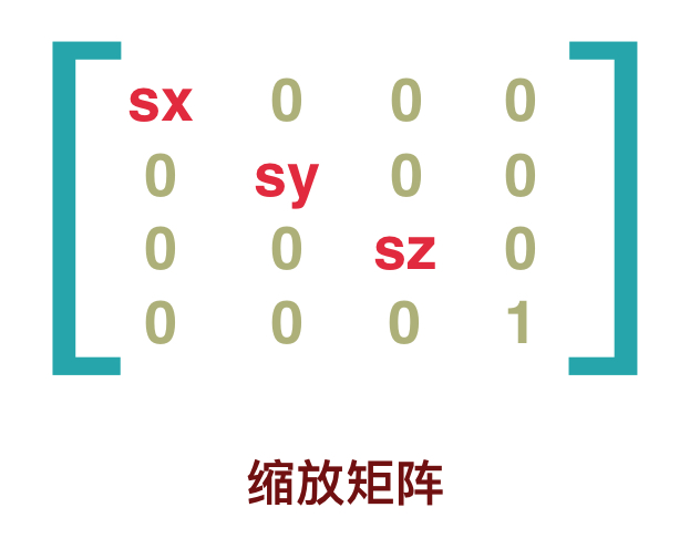 除了 sx、sy、sz 这三个元素需要我们自己设置,其余位置的元素都是固定值,如上图。