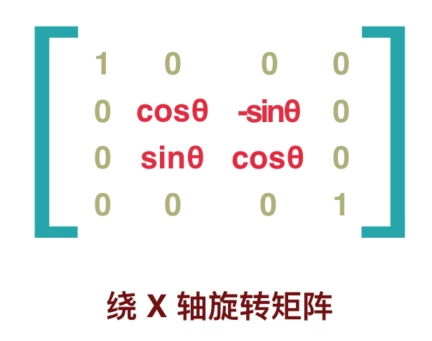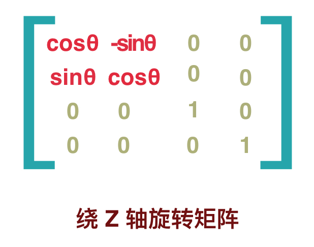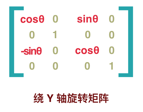 单一矩阵表示旋转时,各个位置元素表示如下: