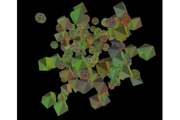 接下来我们用上面的代码演示一下绘制多个模型的场景,利用之前写好的立方体和球体生成函数,我们生成 200 个模型,随机分配颜色,请注意由于目前强制要求一个模型的顶点必须包含颜色、坐标、纹理坐标、法向量的,所以我们的模型生成函数必须要有能力生成这些属性。